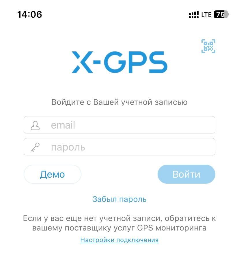 Для работы с приложением “X-GPS Монитор” Вам потребуется зарегистрировать учетную запись или ввести данные от своего аккаунта (логин и пароль), если Вы уже зарегистрировались ранее.