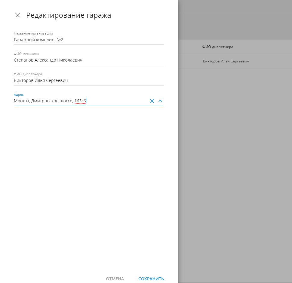 Карточка гаража