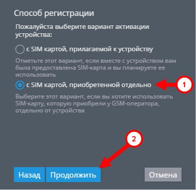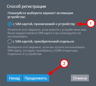 Выберите пункт “С SIM-картой, прилагаемой к устройству” и нажмите “Продолжить”