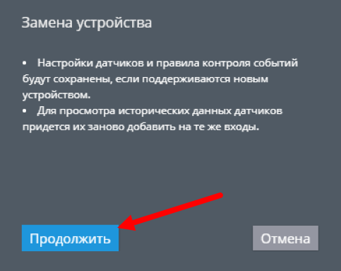Нажмите на кнопку “Заменить устройство”